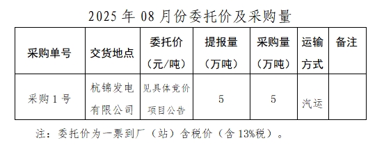 內(nèi)蒙古能源集團(tuán)有限公司計(jì)劃對所屬杭錦發(fā)電有限公司2025年8月市場煤采購進(jìn)行電子專場交易,交易信息現(xiàn)對外公開發(fā)布,凡符合條件的交易商均可參加。